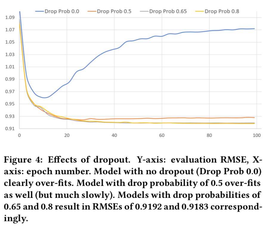 - 실제로, "Netflix full"에서 가장 좋은 성능을 보이는 모델도 이 집합에서는 Overfitting이 발생하며, 그래서 우리는 모델 복잡도를 감소시켜야 했음 (세부사항은 Table 4).