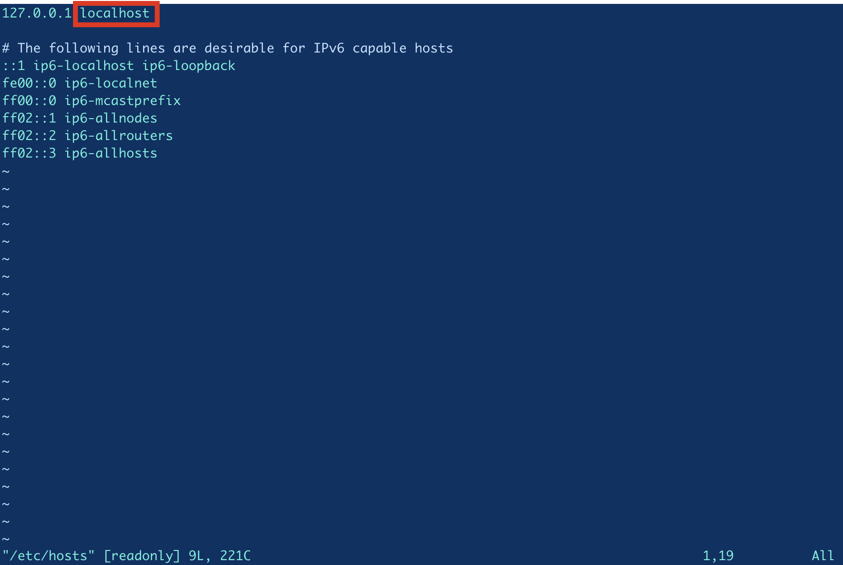 $ sudo vi /etc/hosts
