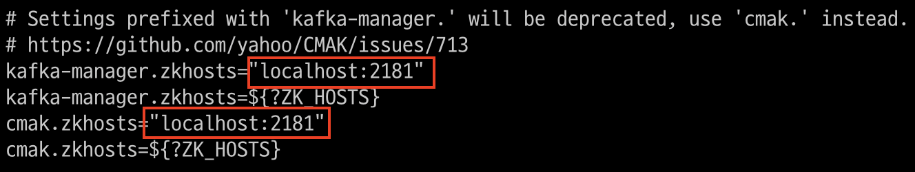 4. conf/application.conf 파일 수정 (로컬에 주키퍼를 띄웠기 때문에 아래와 같이 수정)