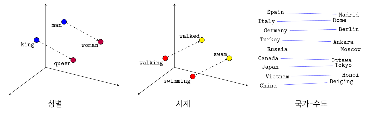 - 의미가 유사한 단어는 가깝게, 반대의 경우는 멀게 배치가 될 것이다.