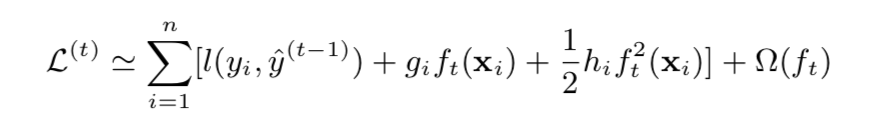 - \(g_{i} \, = \, \partial_{\hat{y}^{(t-1)}} \, l(y_{i}, \, \hat{y}^{(t-1)})\) : 손실 함수의 1차 (First Order) Gradient 통계량