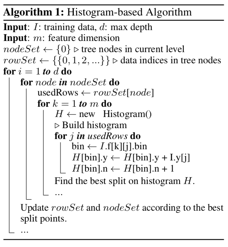 - 실제로, 우리는 0이 아닌 값을 가진 데이터가 기록된 각 Feature 테이블을 사용하여, 값이 0인 Feature를 무시하는 방향으로 기본 히스토그램-기반 알고리즘도 최적화할 수 있음.
