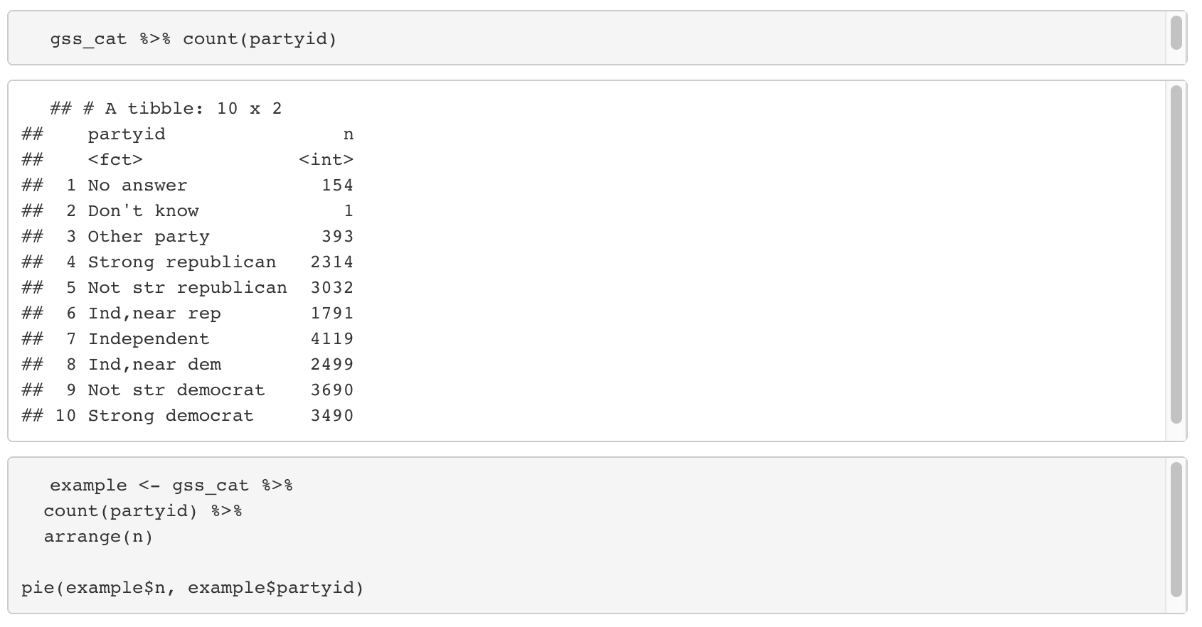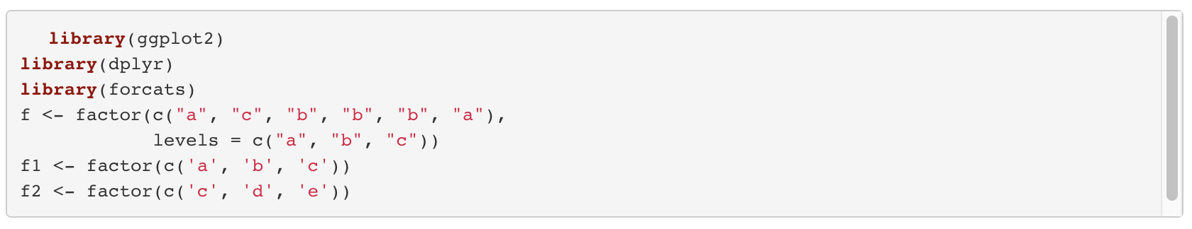 - forcats package에 들어있는 예시 데이터를 이용한다.