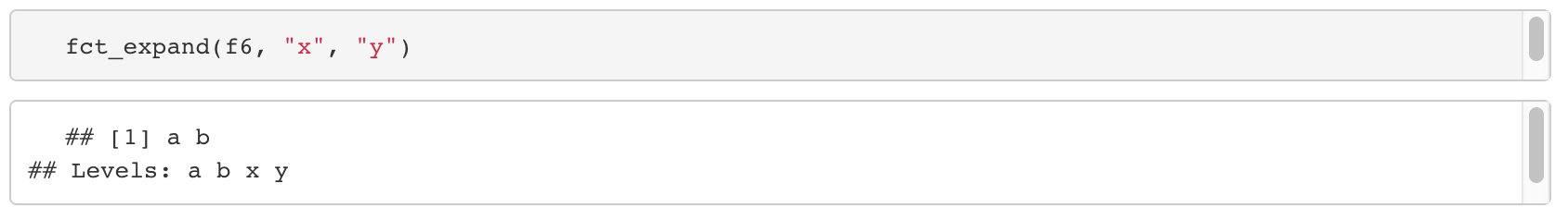 - fct_c와 비슷하게 levels의 합집합을 만들어 데이터를 묶어주며, default값은 두 개의 levels의 합집합이다.
