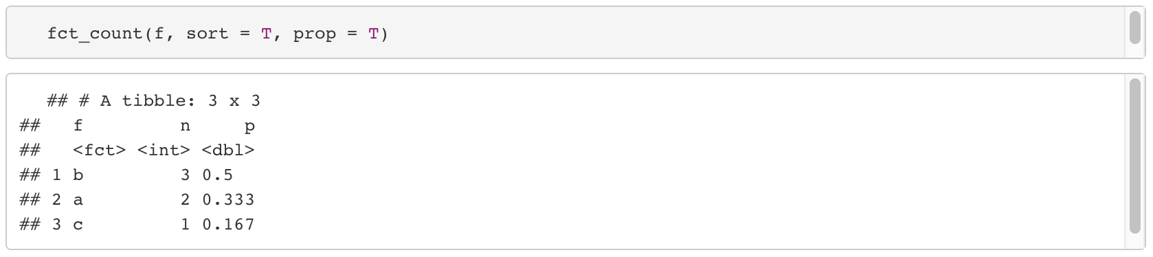 1. fct_count(데이터, sort = F, prob = F)