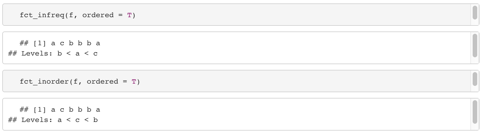 - fct_inorder : 처음 등장한 순서대로 levels를 정렬한다.