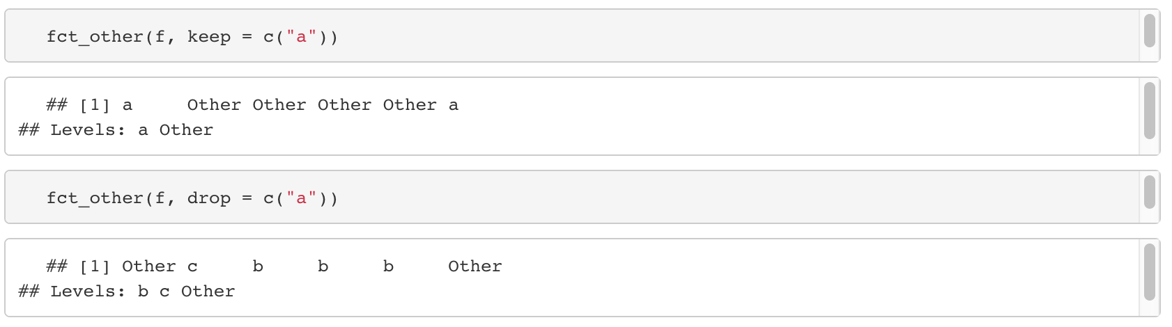 - Parameter 'keep'을 통해 계속 가지고 있을 levels를 넣을 수 있고,