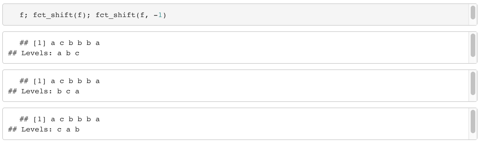 - levels의 순서를 이동하는 함수, n은 칸 수를 의미하며, default 값은 1이다.