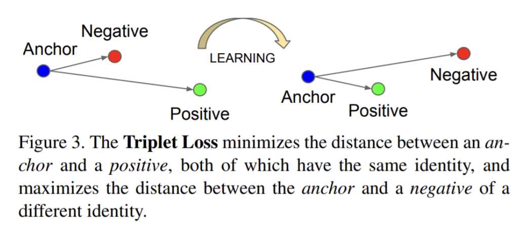- 우리는 특정한 사람의 이미지 x(ai, anchor) 가 다른 사람의 이미지 x(ni, negative) 보다 동일한 사람의 모든 다른 이미지들 x(pi, positive) 과 더 가깝게 되도록 원함.