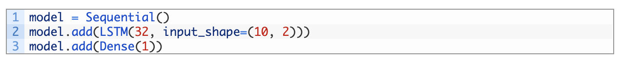 - LSTM 입력층은 첫 번째 은닉층의 "input_shape" 매개변수에 의해 정의됨.