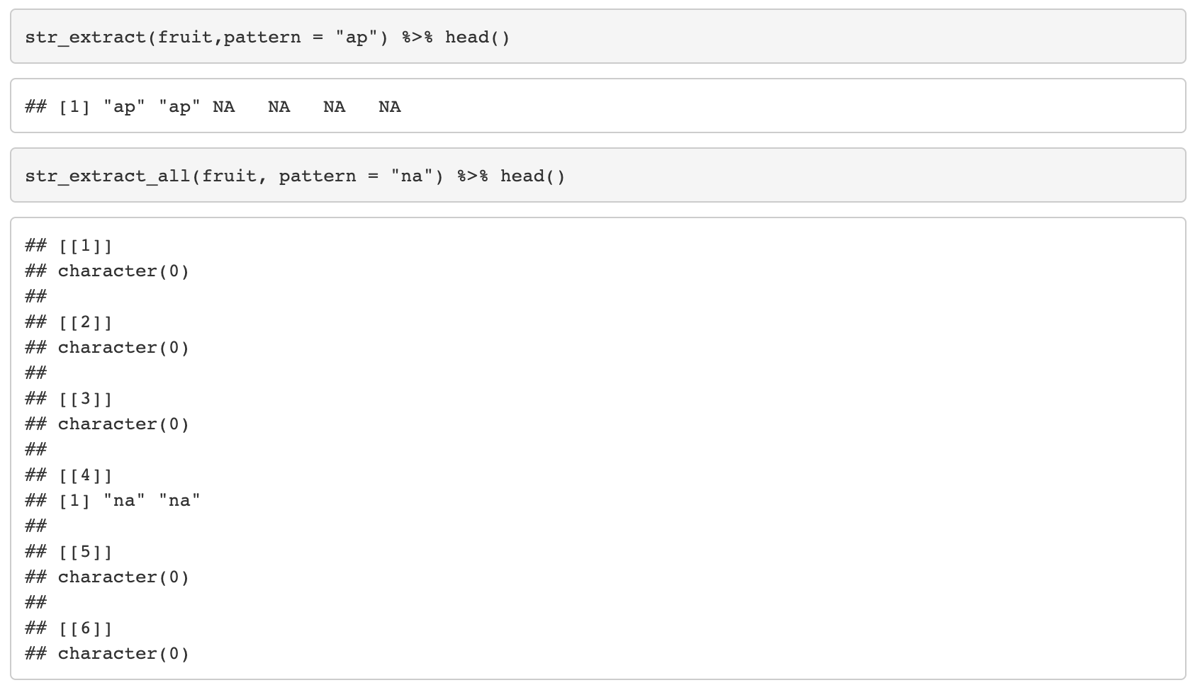 7. str_extract(string, pattern) / str_extract_all(string, pattern)