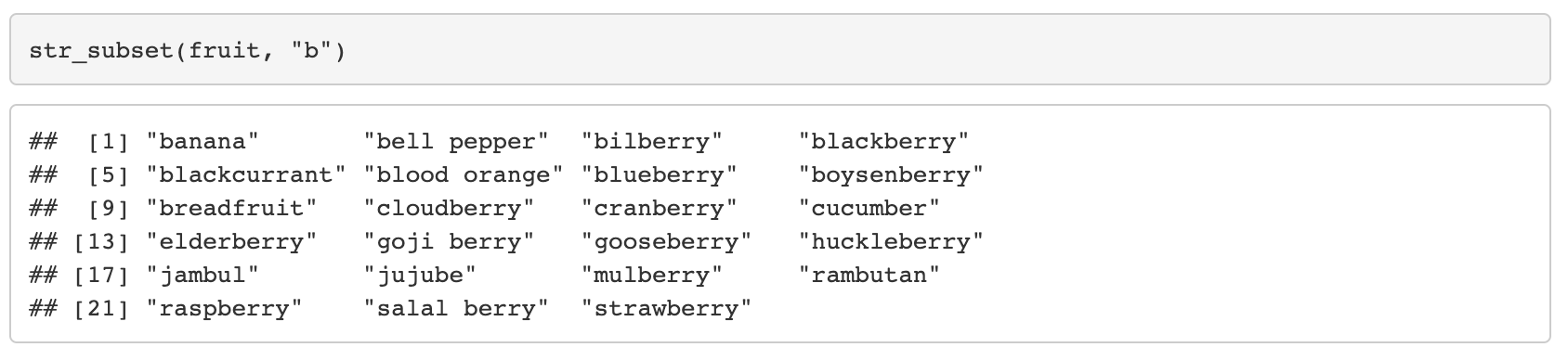 6. str_subset(string, pattern)