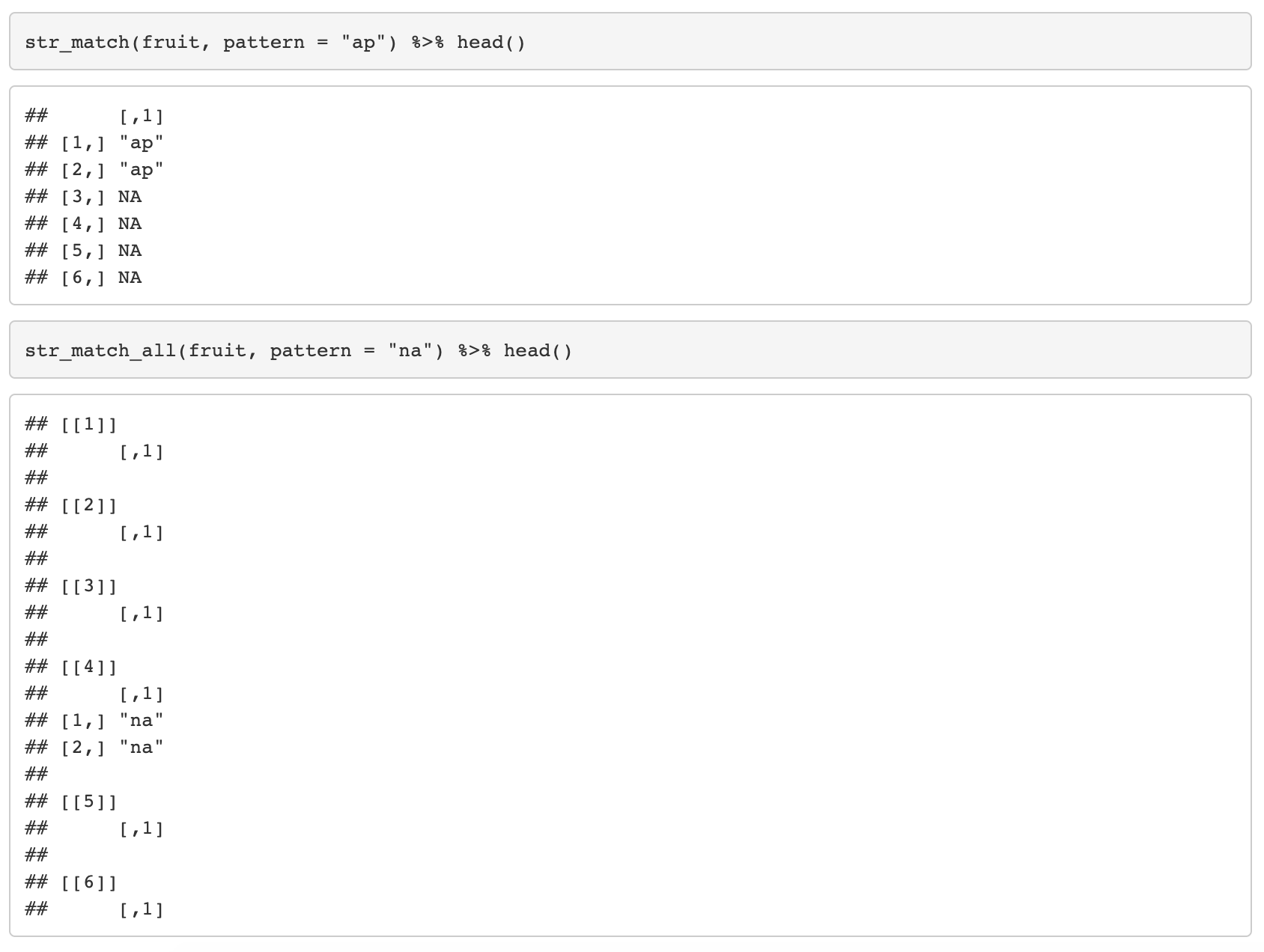 8. str_match(string, pattern) / str_match_all(string, pattern)
