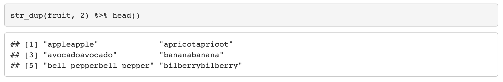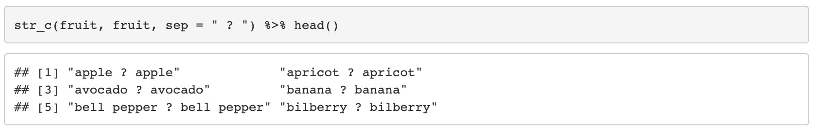 17. str_c(..., sep = "", collapse = NULL)