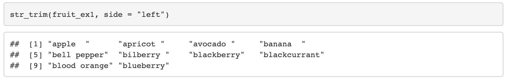 12. str_trim(string, side = c("left", "right", "both"))