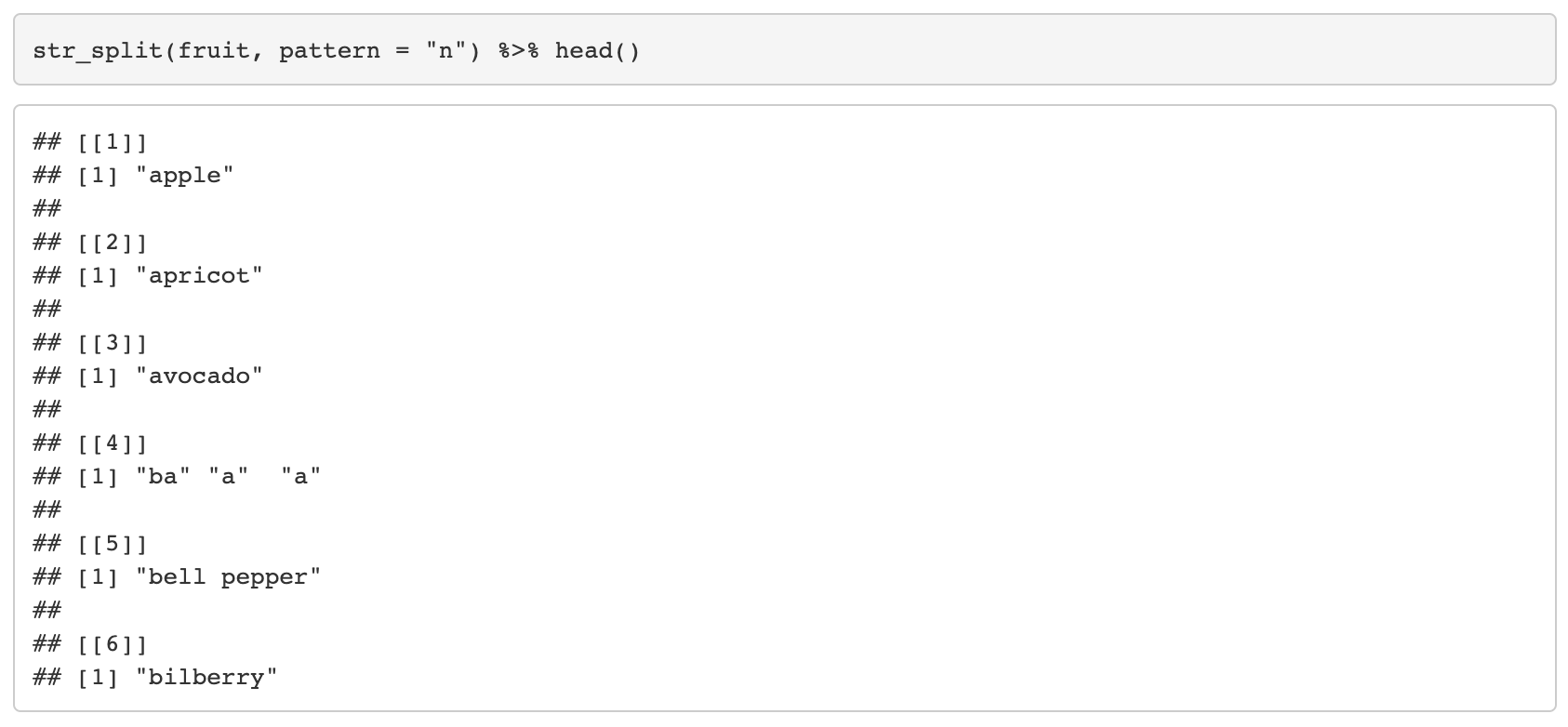 str_split(string, pattern, n = Inf, simplify = F)