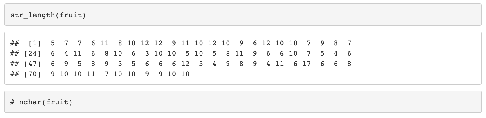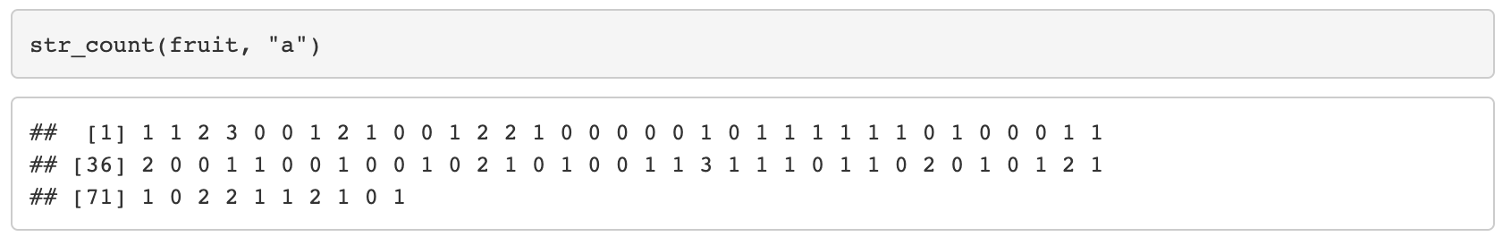 - 다른 str_함수 (str_detect, str_which, ...) 는 boolean, index를 반환한다.