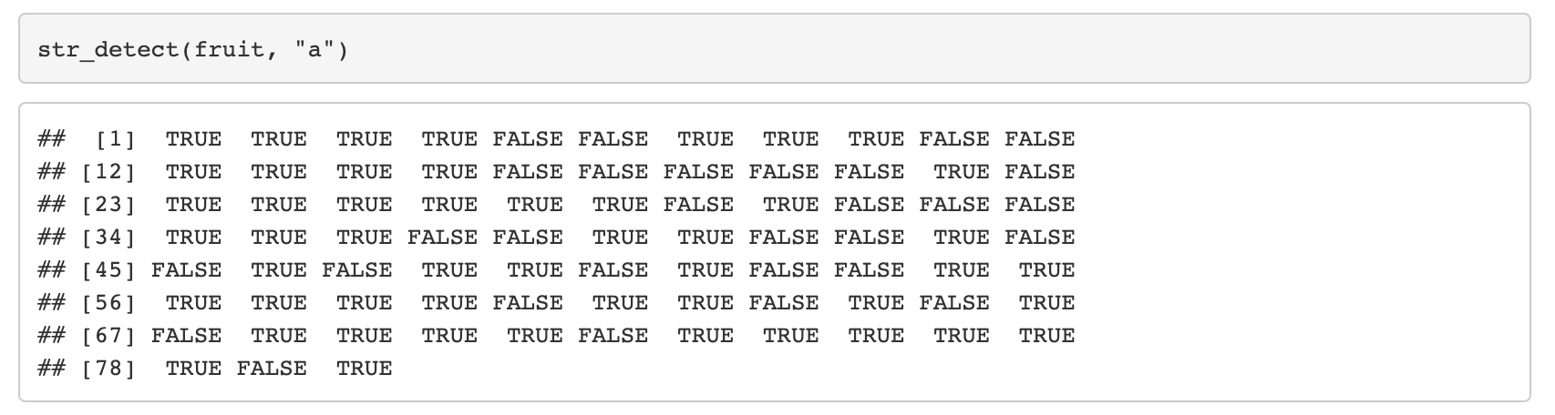 1. str_detect(string, pattern)