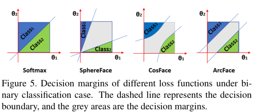 - 최근에, 유명한 연구 라인 (a Popular Line of Research) 은 얼굴 클래스 구분을 최대화하기 위해서 잘 구축된 손실 함수에서 Margins를 통합하는 것임.