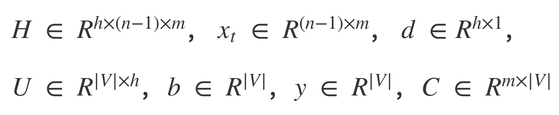 - 다음은 NPLM의 파라미터 차원 수를 정리한 것이다.