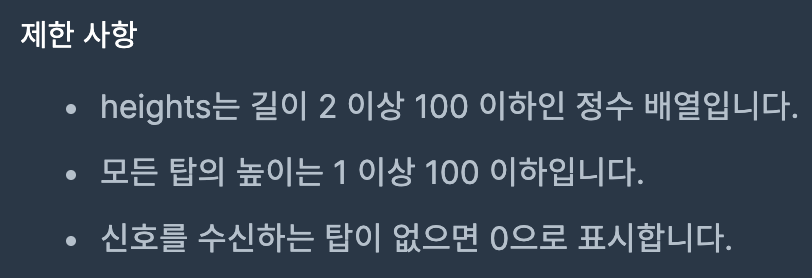 - why ?) FILO 형식으로 뒤에서부터 진행하고, 신호가 수신된 탑은 고려할 필요가 없어 스택을 사용하면 다루기가 편할거라 생각.