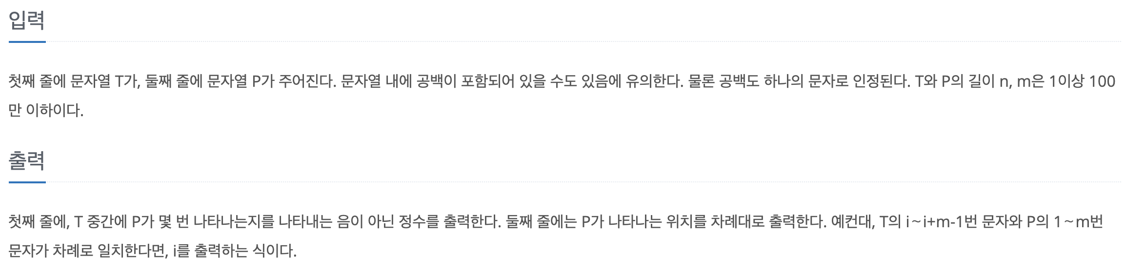 - KMP 알고리즘을 그대로 구현하면 되는 문제이다.