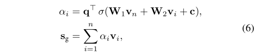 - (3) 어텐션 메커니즘을 사용한 Global 임베딩 (SR-GNN-ATT)