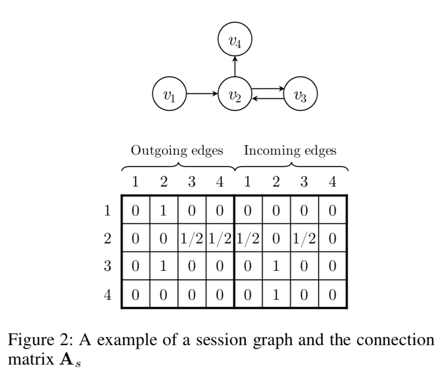 - 세션 기반 추천의 경우, 먼저 우리는 과거 세션 시퀀스를 가지고 방향 그래프를 구축함.