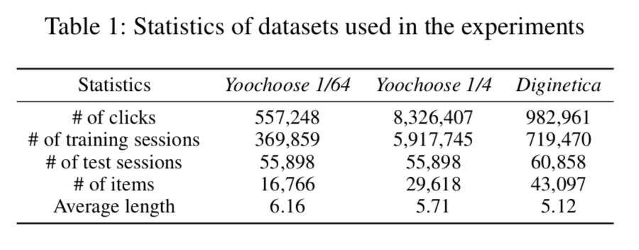 - 비교를 위해, 우리는 Yoochoose 1 / 64 & Diginetica의 세션을 두 그룹으로 나눔.