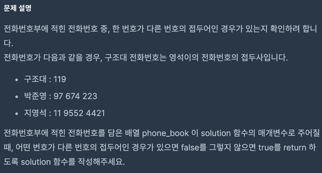 [프로그래머스] - 전화번호 목록